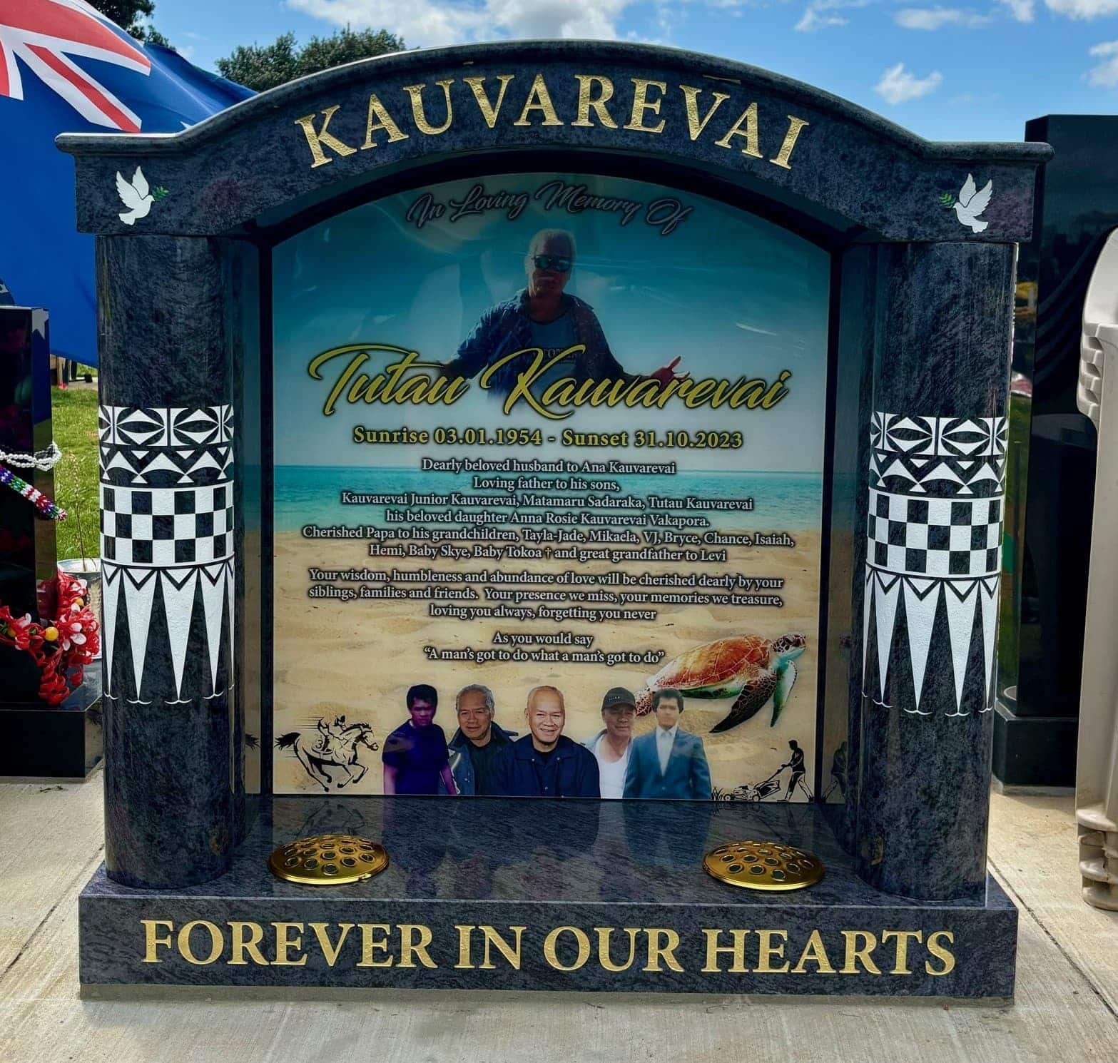 Yes, we install throughout New Zealand and ship to the Pacific Islands. We can also support families overseas in arranging memorials here.